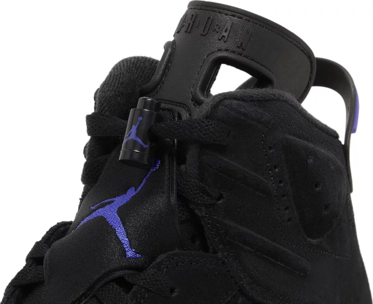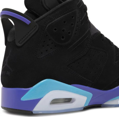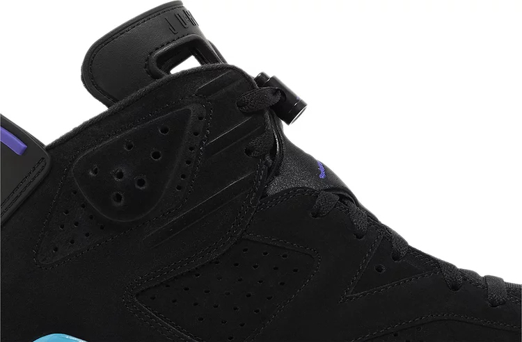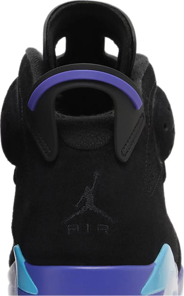 The Air Jordan 6 Retro ‘Aqua’ takes its design cues from an OG colorway of the Air Jordan 8. Michael Jordan’s first championship shoe features a black nubuck upper with tonal Jumpman branding on the back heel. Heritage details include lace locks, a spoiler-like pull tab, and a molded tongue with two grip holes. Contrasting hits of Bright Concord and Aquatone land on the polyurethane midsole, fitted with visible Air-sole cushioning in the heel and supported underfoot by a translucent rubber outsole.
