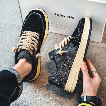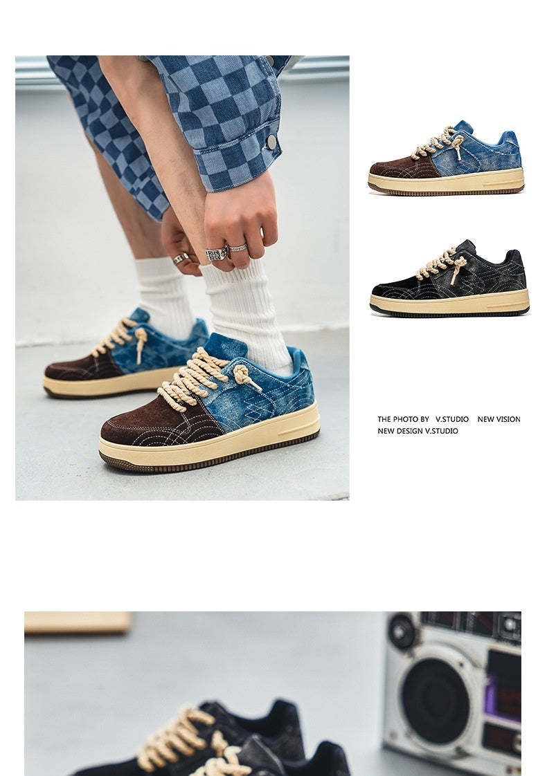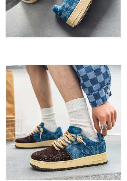 Leisure Denim Board Shoes Men Lace-up Flats Skateboard