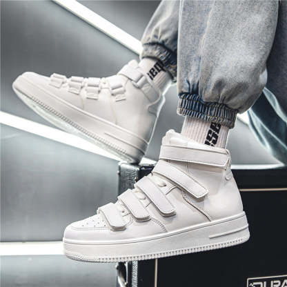 Spring Men's High-top Board Shoes Trendy Youth Student White Shoes Velcro Sports Casual